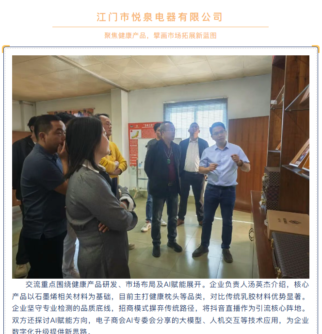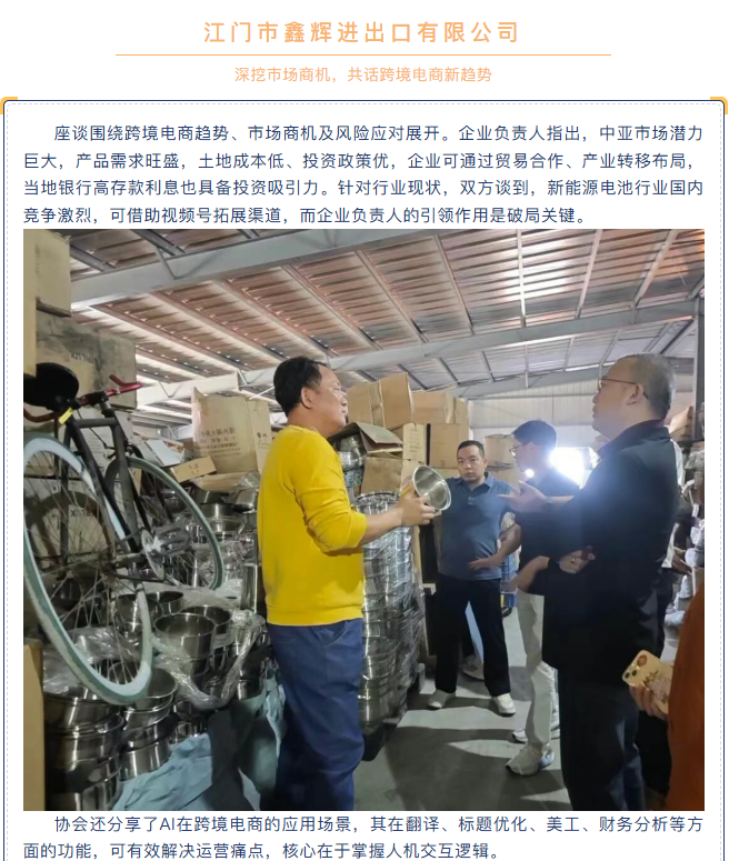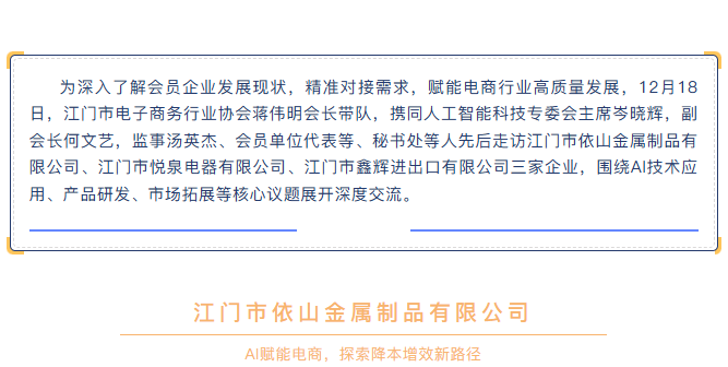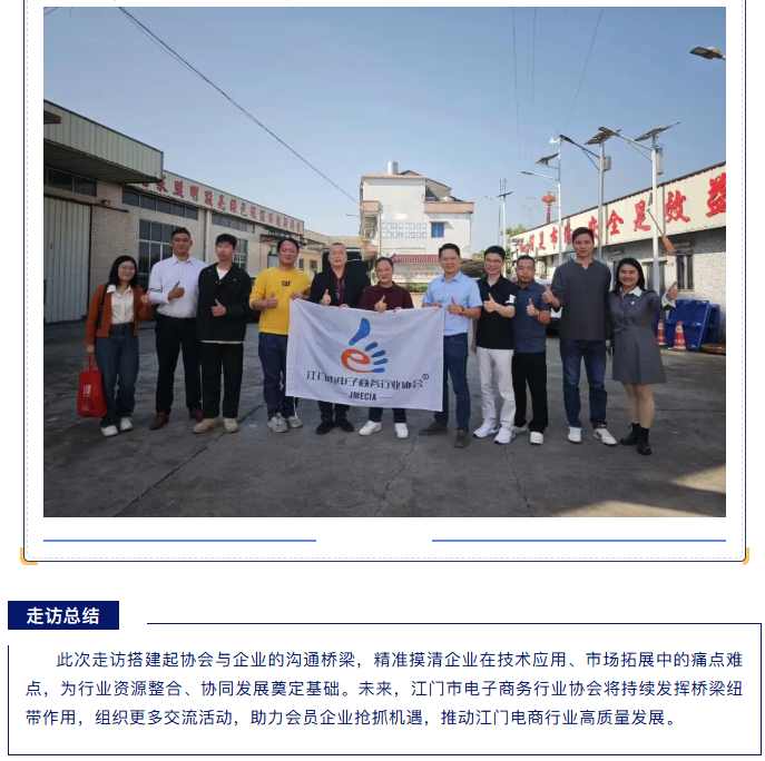 【协会动态】走访企业取真经,交流互鉴促发展——江门市电子商务行业协会开展企业走访活动 发布时间:2025-12-30 分享至: 上一条:【协会动态】以法治为舵 护航出海——江门市涉外法律服务交流活动 下一条:【协会动态】跨界联动,共探新机——拜访江门市川渝商会