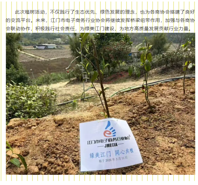【协会动态】绿美江门 同心共植|商协会联动义务植树活动圆满举行 发布时间:2026-03-16 分享至: 上一条:【考察邀约】5月中亚市场考察团,开团了!!! 下一条:【活动邀约】出海抢单!中亚市场掘金沙龙分享会