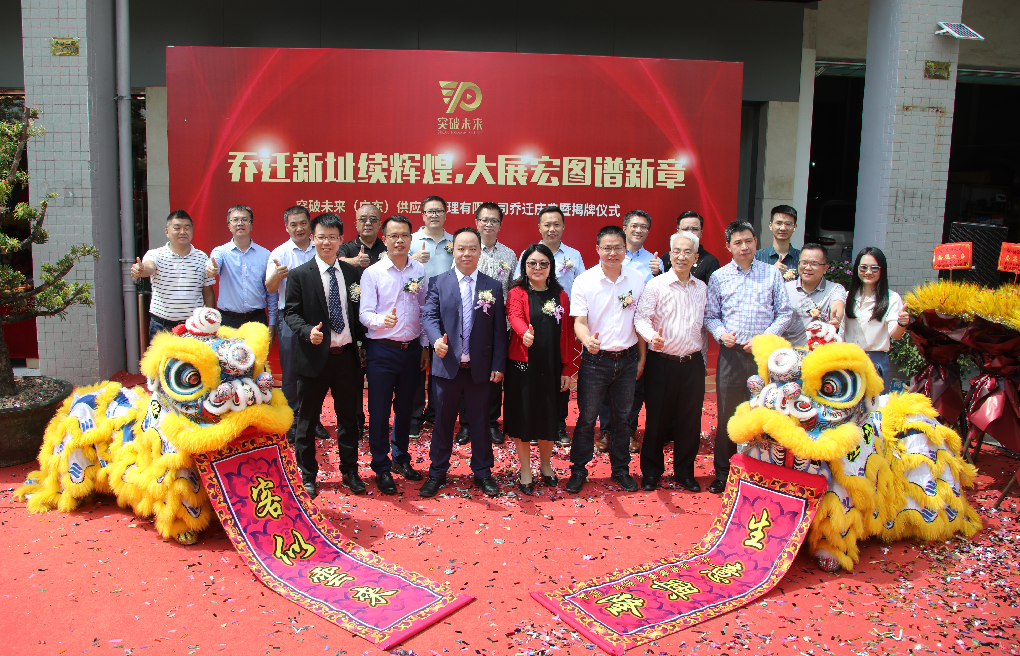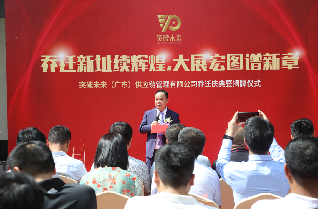 5月19日,乔迁新址续辉煌,大展宏图谱新章——突破未来(广东)供应链管理有限公司乔迁盛典暨揭牌仪式在江门市蓬江区港口二路突破未来(广东)供应链管理有限公司门前广场举办,江门市电子商务行业协会会长符智波受邀出席本次盛典。江门市商务局处长林俊挥、江门市工业和信息化局科长苏景垣、江门市税局科长邓绯虹、江门市照明电器行业协会执行会长蒋伟明、秘书长罗志达、办公室主任邝玉环、阿里巴巴国际站供应链南粤大区一众团队及中供区域和合伙人等嘉宾亲现场。