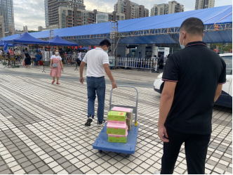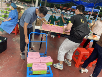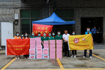 9月29日下午,监事长单位-江门市德悦进出口有限公司积极开展慰问工作,到蓬江区环市街道华侨广场及育德社区核酸检测点为抗疫一线工作人员送清凉物资,其中菊花茶250ml共152盒;凉茶饮料160罐。