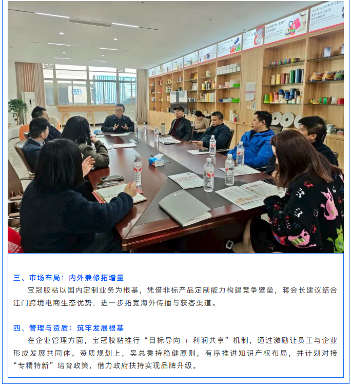 【协会动态】共探制造企业破局之道——走访江门市宝冠胶粘材料有限公司 发布时间:2026-03-04 分享至: 上一条:【活动邀约】家居用品不锈钢行业增长新路径: AI让你不再等订单 下一条:【协会动态】广东工业大学江门校友分会到访我会交流座谈